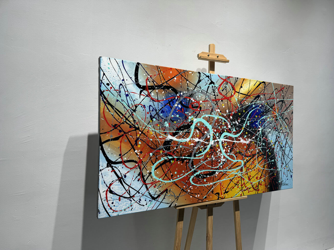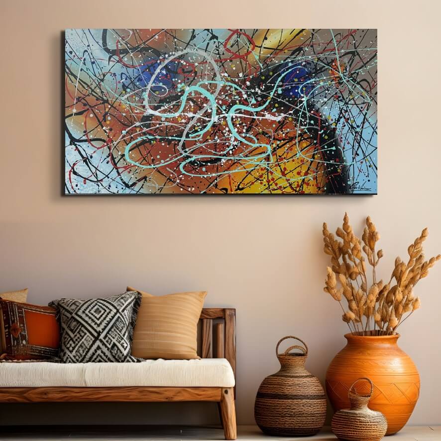 Het schilderij is gespannen over een frame van ~3,5 cm dik en kan direct aan de muur worden gehangen.
