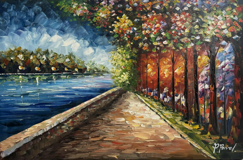 Het schilderij is een handgeschilderd olieverfschilderij. Het is geen print of iets dergelijks, maar is met de hand geschilderd. Olieverfschilderij is de klassieke vorm van schilderen. Olieverfschilderijen kenmerken zich door hun goede kleurdiepte.