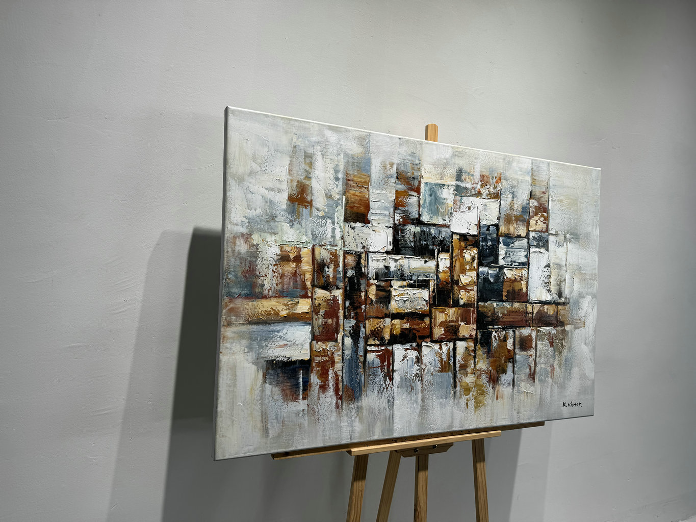 Het schilderij is gespannen over een frame van ~3,5 cm dik en kan direct aan de muur worden gehangen.