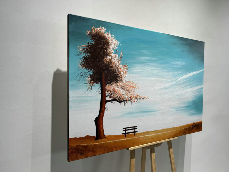 Het schilderij is gespannen over een frame van ~3,5 cm dik en kan direct aan de muur worden gehangen.
