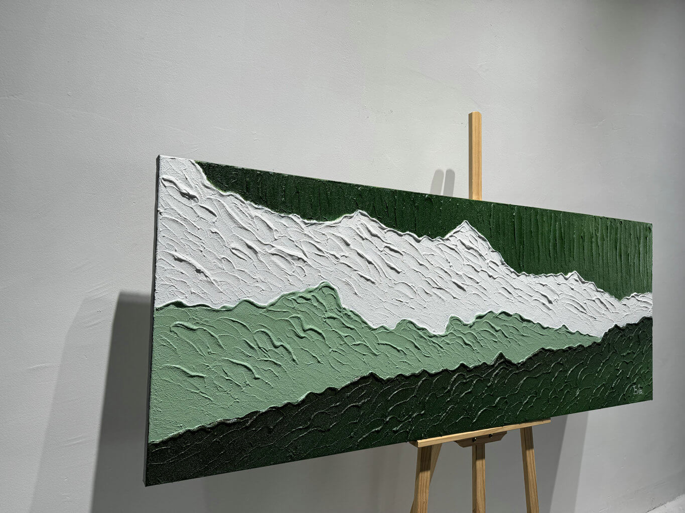 Het schilderij is gespannen over een frame van ~3,5 cm dik en kan direct aan de muur worden gehangen.