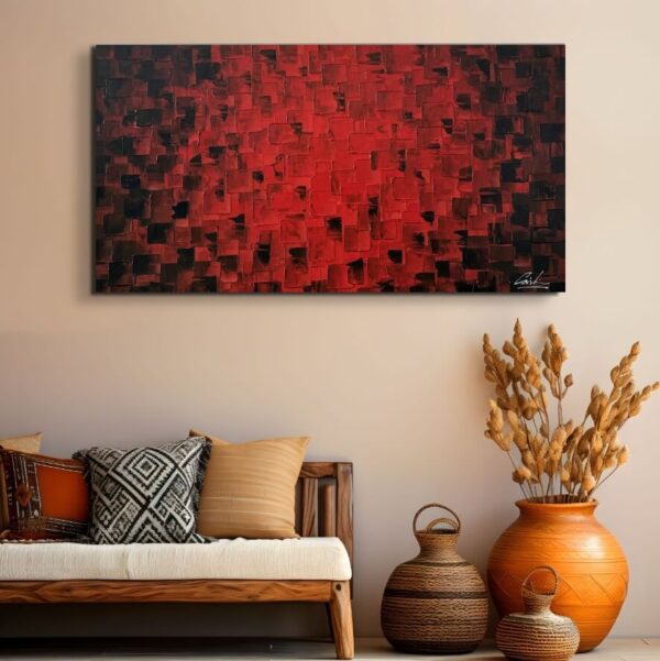 Het schilderij is gespannen over een frame van ~3,5 cm dik en kan direct aan de muur worden gehangen.